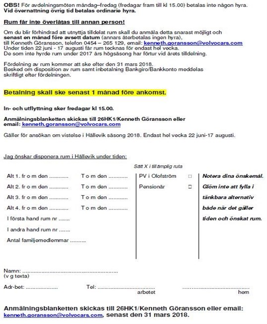 Inlämnas senast 180331 då fördelning av anmälningarna kommer att ske.